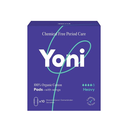 Yoni Organic Pads Heavy is maandverband gemaakt van gecertificeerd 100% biologisch katoen (zowel de toplaag en de absorberende kern). Biologisch katoen is duurzaam, ademend en zacht voor de huid.